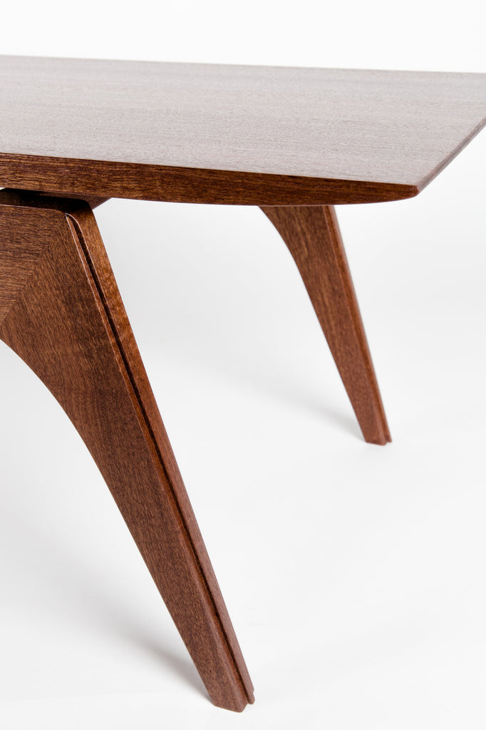 A truly unique piece made from African Sapele wood and Figured Maple, this coffee table gets its name from the German word for dragonfly. Inspired by the beautiful lines of the insect in question as well as my love for Danish Modern and Art Deco furniture. The final shaping of this special wood table is completed with hand tools.